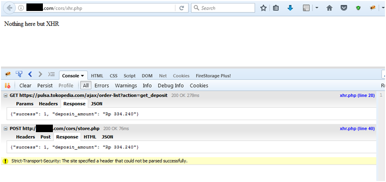 Kemudian dicoba melakukan manipulasi origin menjadi http://tokopedia.com.ethic.ninja hasilnya server melakukan respon balik secara normal! Hal ini berlaku juga untuk :